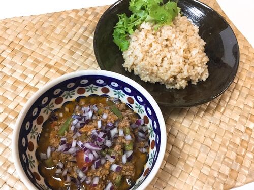 ひき肉と野菜で作るカレー、キーマカレーです。 カレー粉は使わずに、スパイスだけで作りました。 ニンニク、生姜、シナモンスティック、カルダモン、カイエンペッパー、コリアンダーパウダー、クミンパウダー… 工程は多いですが、煮込み時間は短いので早く…