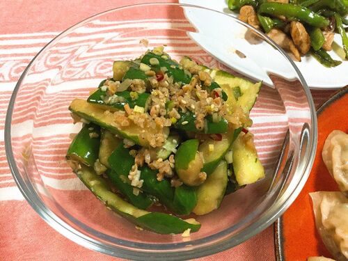 きゅうりがたくさんあるので新しいレシピに挑戦。 栗原はるみさんの「十香味のたたききゅうり」です。 すりこぎで叩いて割った「たたききゅうり」は酢、醤油、砂糖を合わせたものにしばらく漬けておきます。 ニンニク、生姜、干しエビのみじん切りを炒め、長…