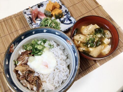 ランチにシラス丼、でも2人分にはシラスが少し足りないので、カツオの腹身の干物を焼いてほぐしたものとの「あいのせ丼」にしました。 まん中には温玉を乗せたいのですが、私は温玉や半熟卵を作るのがちょっと苦手です。 色々な方法で試してみるのですがなか…